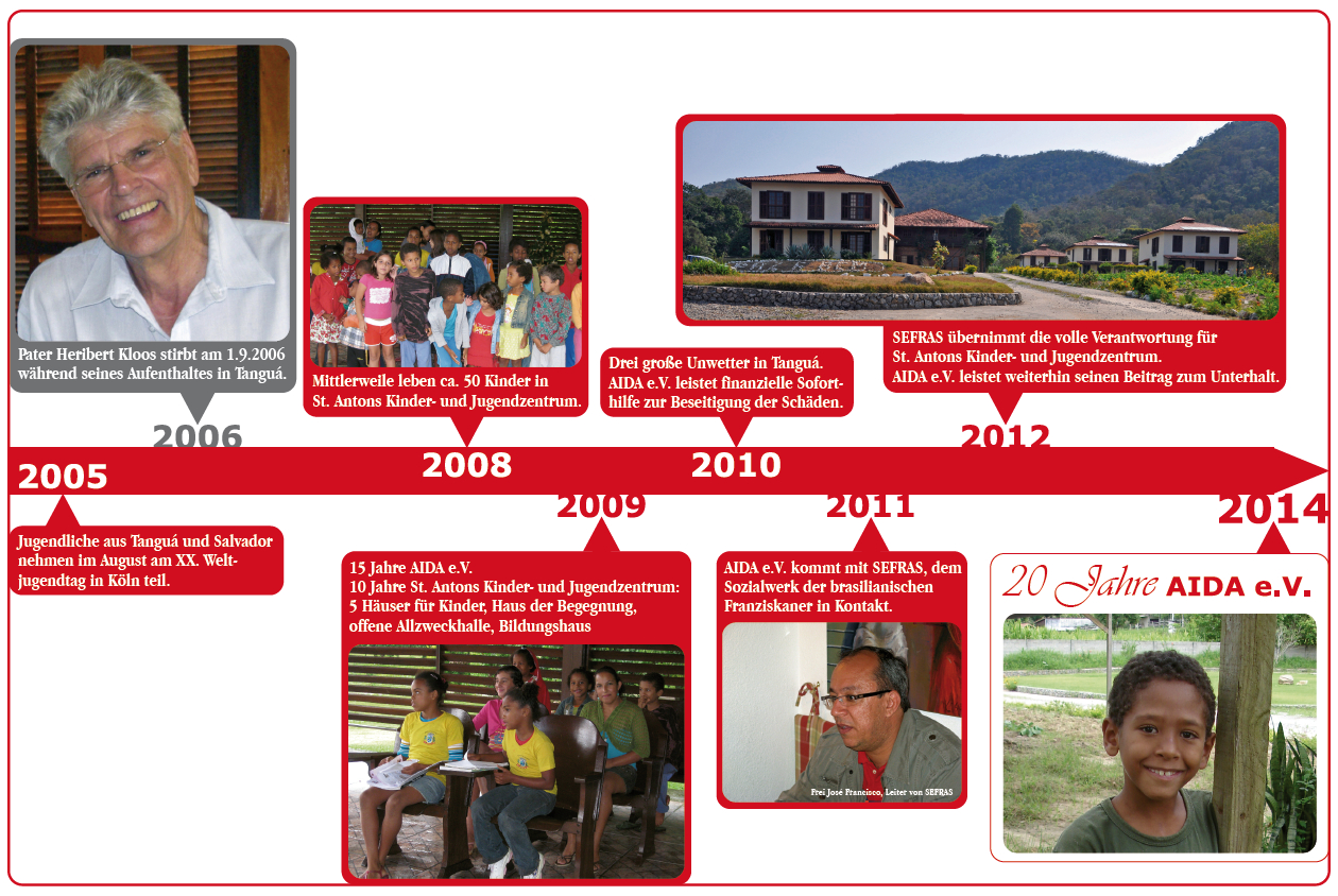 Im Jahr 1998 bekam AIDA e.V. in Tanguá im brasilianischen Bundesstaat Rio de Janeiro ein Grundstück geschenkt, um es zum Wohle bedürftiger Kinder zu nutzen. Dies war der Anfang von St. Antons Kinder- und Jugendzentrum.
