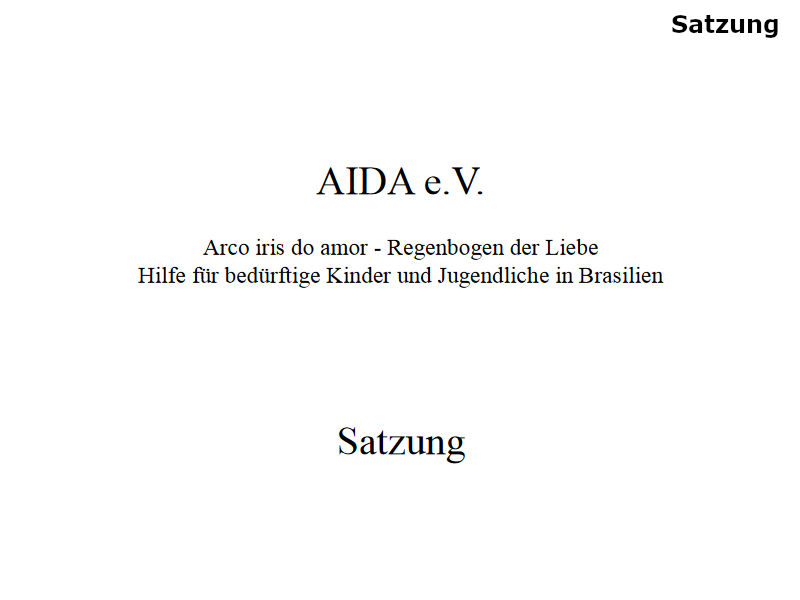 Der Name AIDA ergibt sich aus den portugiesischen Worten Arco Iris do Amor = Regenbogen der Liebe. AIDA e.V. richtet seine Aktivitäten speziell auf die Unterstützung von bedürftigen Kindern und Jugendlichen in Brasilien. Erschreckend viele Kinder und Jugendliche sind dort zahlreichen familiären Problemen und einem menschenunwürdigen Umfeld ausgesetzt: Armut, zerrüttete Familien, Gewalt, Kriminalität, Prostitution, Drogen etc.